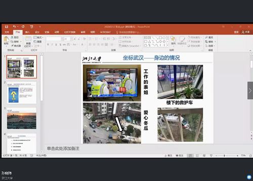 讲最后总结的班级德育导师是杜丽副教授,战争或者灾难常常会变成一个国家加强凝聚力的时机。能从这次战疫行动当中感受到中国人民的凝聚力,能见证中国综合国力的提升。谁都要坚守自身的岗位,学生的岗位是学习,可借由跟老师沟通来督促自己。