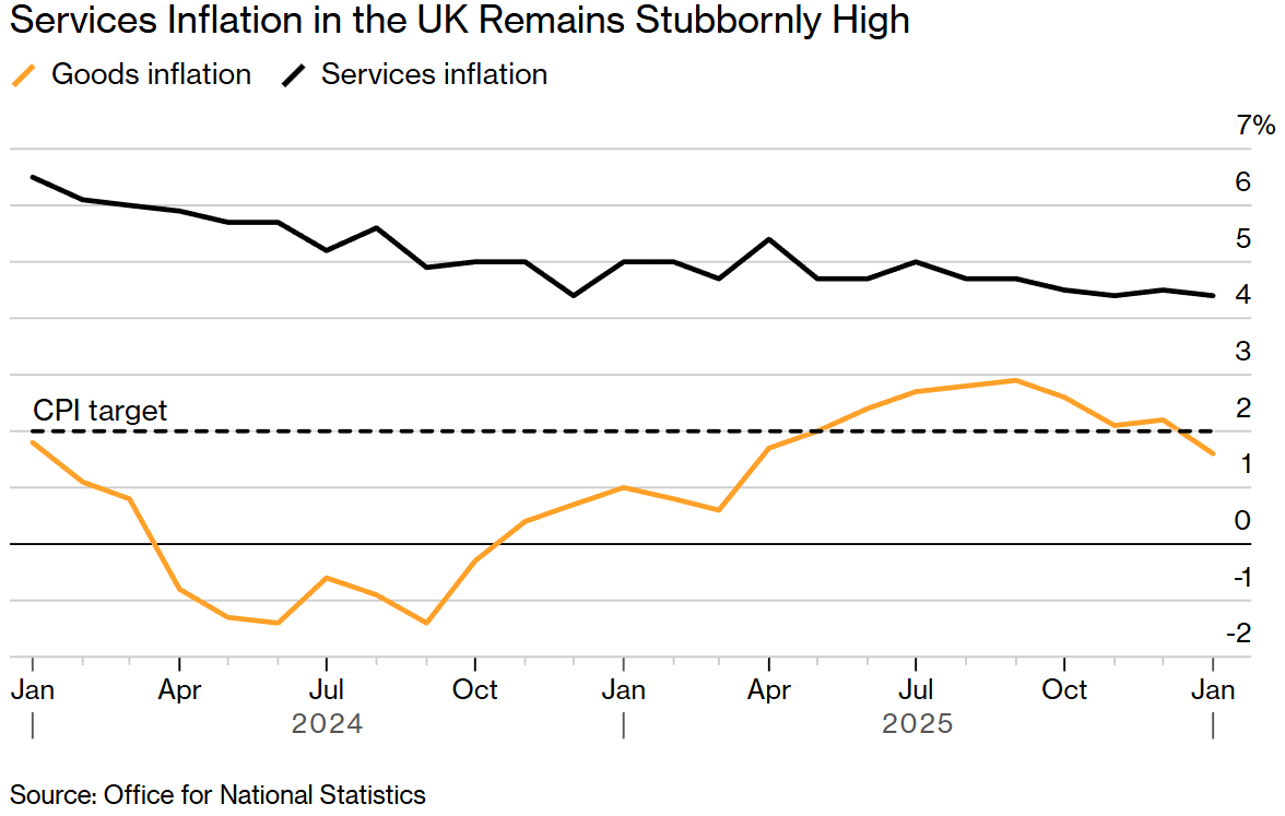 在2月的会议上,英国央行以5比4的投票结果决定维持利率不变,这一微弱的多数票反映了官员们在降息时机和节奏上的分歧。