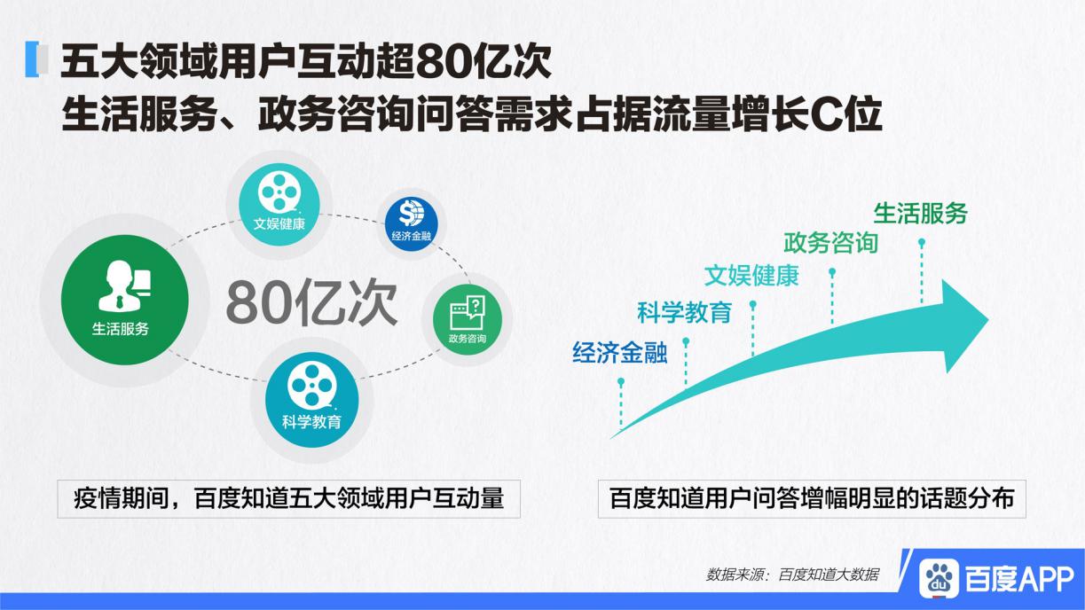 一天之中,人数超过一点六亿人次的情况之下,在百度知道里针对疫情相关问题展开提问以及回答,在这个数字的背后,存在着无数民众,他们处于被隔离在家的状态,对于病毒毫无所知,生活在突然之间陷入停摆时有着实实在在的焦虑。问答平台从成为信息查询的工具,转变为普通民众度过危机的“救命稻草”。