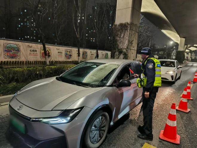 海曙交警除夕夜设卡查酒驾。