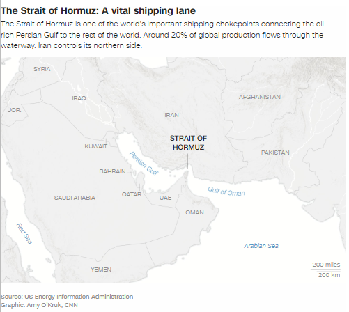 这条最窄处仅 21 英里的水道,是全球每日 2000 万桶原油的必经咽喉,约占全球原油产量的五分之一。它是波斯湾产油国向全球输送原油的唯一通道。近期油价上涨,很大程度上源于市场担忧伊朗会限制这条航道的供应。