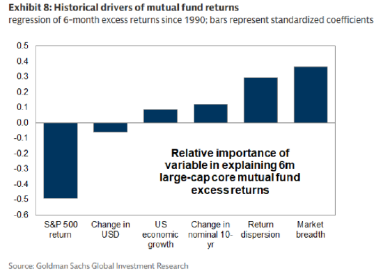 “自1990年以来,市场广度和回报离散度一直是共同基金表现两大最重要的驱动因素,”高盛的Ryan Hammond和Daniel Chavez等人在报告中写道。