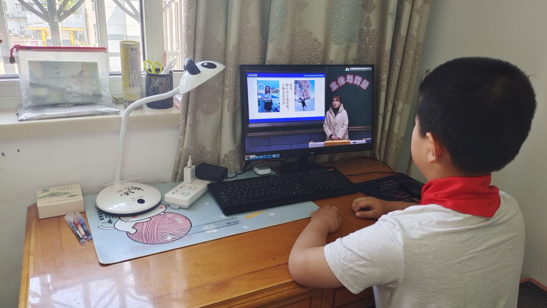 在每周一举办的线上升旗仪式之时,学生们都会慎重地穿上校服,并且佩戴上红领巾。当国歌借助音频传过来的时候,孩子们于家中站得笔直进行行礼,这样的仪式感并没有因为距离而有所减弱。于屏幕前面站立身姿端正,传达出对于祖国的敬重之情。