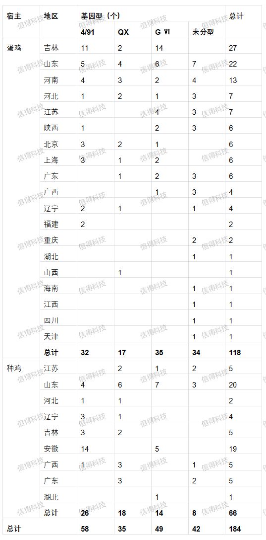 种鸡群里,4/91分支被检出时较为集中,在安徽的一个地方,就检出了14个。多基因型毒株在同一个鸡群共同流行的状况变得越来越普遍,这表明单一血清型疫苗难以给予全面的保护。养殖场务必要依据本场的监测结果,挑选包含对应流行株的多价灭活苗。