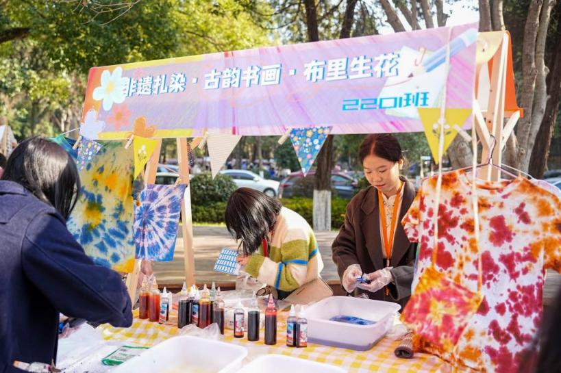 “美遇辰间”美育体验日大型校园文化活动,于11月24日举行,又于11月25日举行,在艺术学院前广场举办。学院的20个班级全都参与进来,各学生组织也全部参与进来,共设置了28个展位。活动内容包含地方戏曲,涵盖荆楚剪纸,有中国书法,涉及非遗扎染,包含植物喷绘,还有湿拓画等多种艺术形式。在两天的时间里,广场上总是人头攒动,参与的师生在动手实践当中亲身感受传统文化的魅力。不少学生体验完一个项目之后,又去排队尝试下一个项目。
