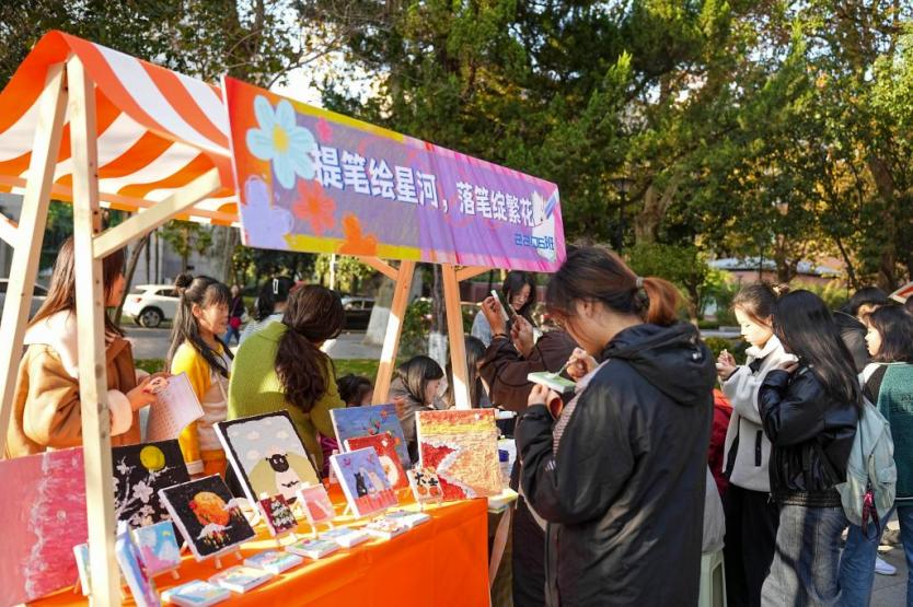 11月19日,湖北大学艺术学院弄了个“美美与共”美育开放日活动。这个活动是由基础课部主任彭茹娜老师带头进行指导的。而具体组织开展的事儿,则是交给研究生会来负责。现场总共设置了3个活动板块,有着9个展位,这里面涵盖了刺绣、剪纸、书法等工坊实践方面的内容。学生们的国画、油画、水彩、版画作品以及各种各样的工艺美术作品,在创意集市里集中进行展售。才艺展示区同样安排了肖像速写、签名设计、国画书签等互动环节,是直接针对校园师生的实际需求来弄的。