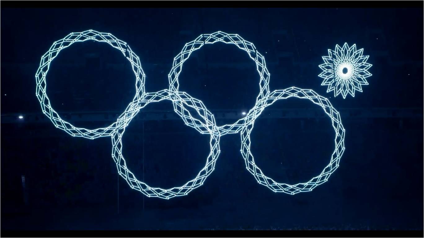 电影精巧地运用展示火炬传递的画面,这些画面把位于山麓之上的奔跑动作,及处于冰河之间的滑行动作交织到一块儿。冰和火这两种呈现对立态势的元素于银幕之上产生碰撞,其中冷色调的冰雪跟暖色调的火焰构成极为强烈的对比。俄罗斯模特伊莉娜·莎伊克在全黑背景前面所进行的表演,使得人体所展现出的美与冰雪的酷冷实现了堪称完美的融合。