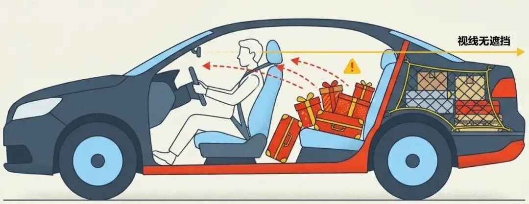 诸多人士满怀急切之心打算将整个家庭全部塞入车辆之中,致使后备箱被填得满满当当,而后座更是堆叠至顶棚之处。如此这般的行为着实极具危险性,一旦遭遇急刹车的状况,那么车尾的行李将会如炮弹一般迅猛飞射过来进而砸伤他人。