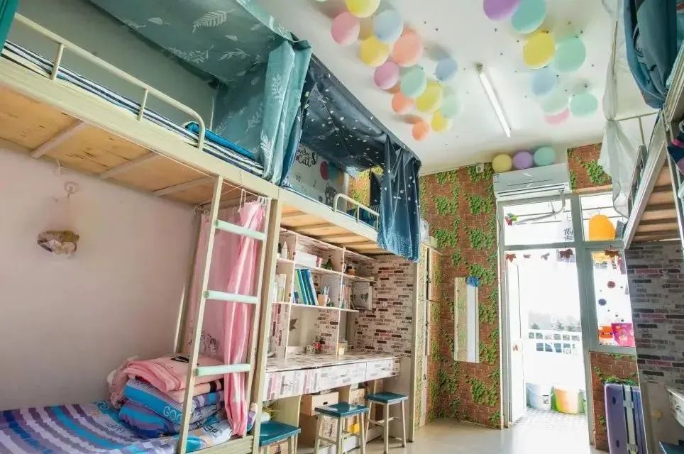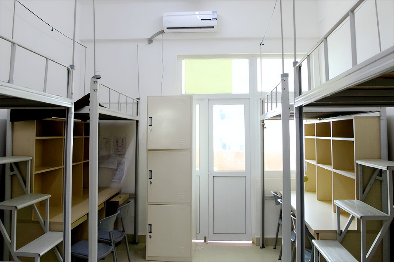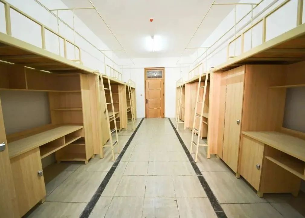 具备四人间与六人间这两种可供挑选的类型,均为上床下桌的布局样式。宿舍里面配备有空调以及热水装置,WiFi信号处于稳定状态,并且每层楼都设置有供学生进行自习的公共学习区域。