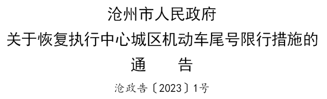 廊坊市公安局于2023年2月9日发布通告称,全市范围内恢复限行。保定市大气污染防治工作领导小组办公室在2月10日发布通知表示,恢复主城区限行。沧州市人民政府于2月12日宣布,中心城区恢复限行。三地限行措施均自2月13日起正式执行。