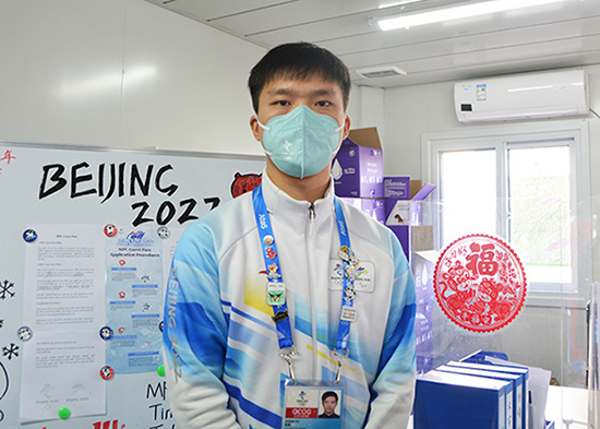 张瑞是中国人民大学的硕士生,他在主媒体中心访问卡办公室担当志愿者助理,其职责是给有特定需求的访客发放访客卡,他觉得新时代中国青年大学生有责任也有义务于冬奥场馆奉献自身,服务技能以及对冬奥的了解都大幅加深了。
