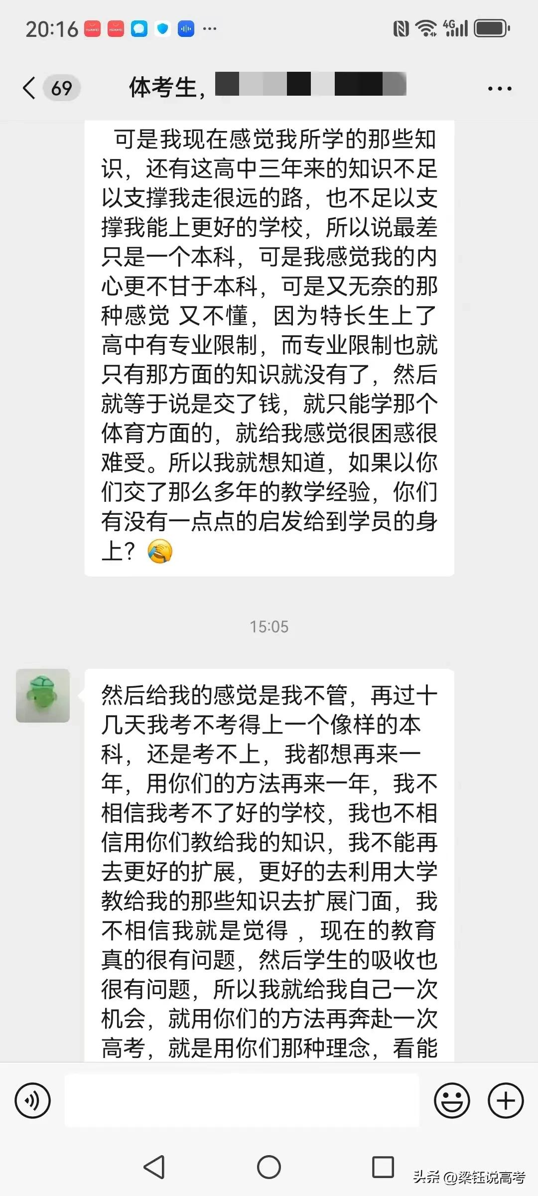 更加令他感到困惑的是,体育生所面临的专业限制致使他觉得自身身陷束缚之中。已然缴纳了费用便仅仅能够去学习与体育相关联的内容,这样的一种局限性使得他内心感到压抑以及难受。他在信息里再三提及,内心并不甘愿仅仅去上一所普通本科院校,然而却又充斥着满满的无力感。