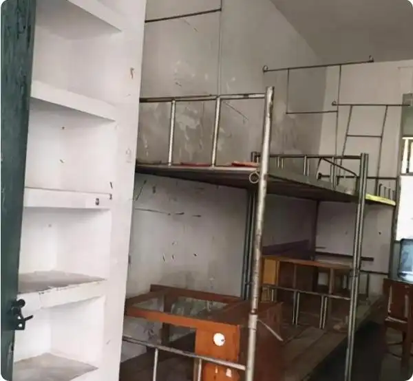 一所位于桂林的学院宿舍被曝光后,好多网友都大声喊着“好像回到八十年代了”。照片当中那些铁床早就布满锈迹,用手轻轻一碰就会掉下铁锈渣,床板是发黑的旧木头,躺上去翻个身就会发出嘎吱嘎吱的响声,搞得人一整晚都没法安稳入睡。更让人烦心的是墙面一大片一大片发黑并且脱落,书桌是那种高中淘汰下来的破旧木桌,桌面坑坑洼洼,写字的时候都得垫一本书才行。在2023年的时候有学生发帖子抱怨,下雨天宿舍还会漏水,必须得用盆接着才能睡觉。