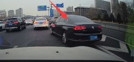 1月19日,处于早高峰时段,有网友驾车,行驶于东四环中路大郊亭桥上,突然发觉前方一辆小客车,居然压着导流带,强行进行并线,这个危险举动,致使周围车辆纷纷避让,险些引发交通事故。