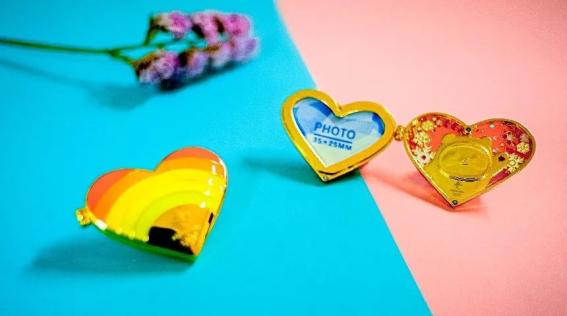 它以彩虹映照的爱心为这套徽章的外形,打开这套徽章后能够看到冰墩墩在团花簇拥之下招手,左侧的双层结构是可以放入爱人或者自己照片的那里,像那般把心意藏在心里一样,四款配色分别被称作“爱的邂逅”“记忆中的原野”“橙色阳光”以及“冰雪嘉年华”,名字本身是有着画面感的,这套徽章的设计是很有心意的。