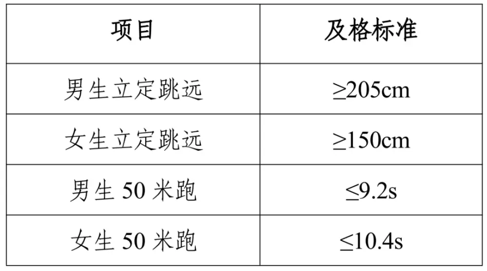 为各高校所采用的体测项目,大多都主要参照《国家学生体质健康标准》里高三年级的评价指标。西北农林科技大学对考生提出要求,要在50米跑、立定跳远、坐位体前屈等项目当中挑选两项来进行测试,只有两项都达到及格标准,才能够算作合格,不然的话就不会予以录取。