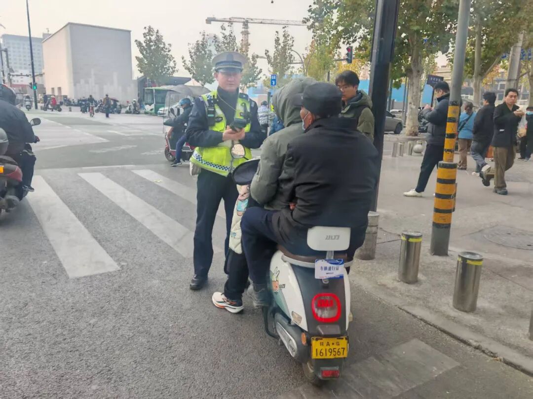 12月9日,早高峰结束之后,交管碑林大队文艺路中队,在南稍门十字周边,开展了电动自行车违法载人专项治理,民警针对非机动车违法载人,不按规定车道行驶,不戴头盔等行为,进行现场纠正和查处,这些看似微小的违法行为,常常是引发交通事故的直接缘由。