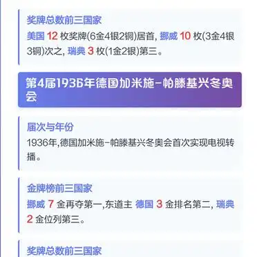 1932年,美国普莱西德湖举办冬奥会,这成为格局变化的转折点,东道主美国凭借主场优势,一下子拿到6枚金牌,首次在奖牌榜上位居榜首,挪威虽位居第二却依然获取3金10枚奖牌,彰显出深厚的冰雪运动底蕴,瑞典以1枚金牌位列第三,保持北欧三国鼎立的态势。