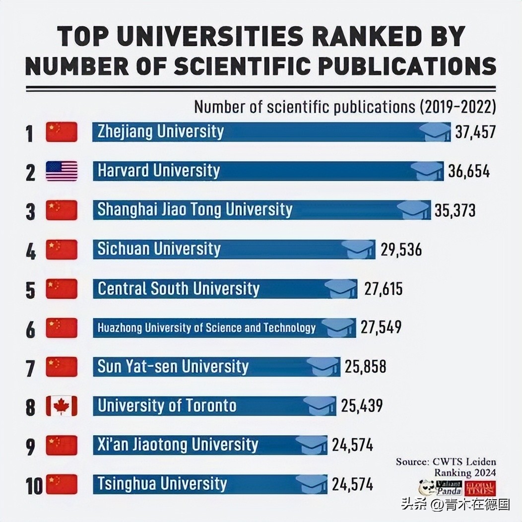 与之形成显著反差的是,中国大学于多个排名体系里持续攀升,莱顿大学排名表明,全球前十的大学之中有八所处于中国,自然指数排名亦展现出相似情形,用自然指数来衡量,浙江大学已然是全球科研产出量最高的学府,这般态势已然延续多年,并非偶发现象。
