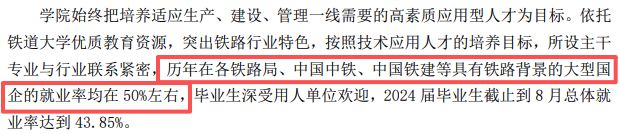 学校的学费,按照年度计算是1万元,这和公办学校的收费情况大体相当,在全国范围内的民办高校当中,这样的学费水平算是比较低的。该校毕业生,每年大概有50%的比例进入到各铁路局、中国中铁、中国铁建等这些央企之中。铁路系统在进行人员招聘的时候,对这个学校十分认可,每年在校招季的时候,都会有大量的铁路单位前来进行招人工作。