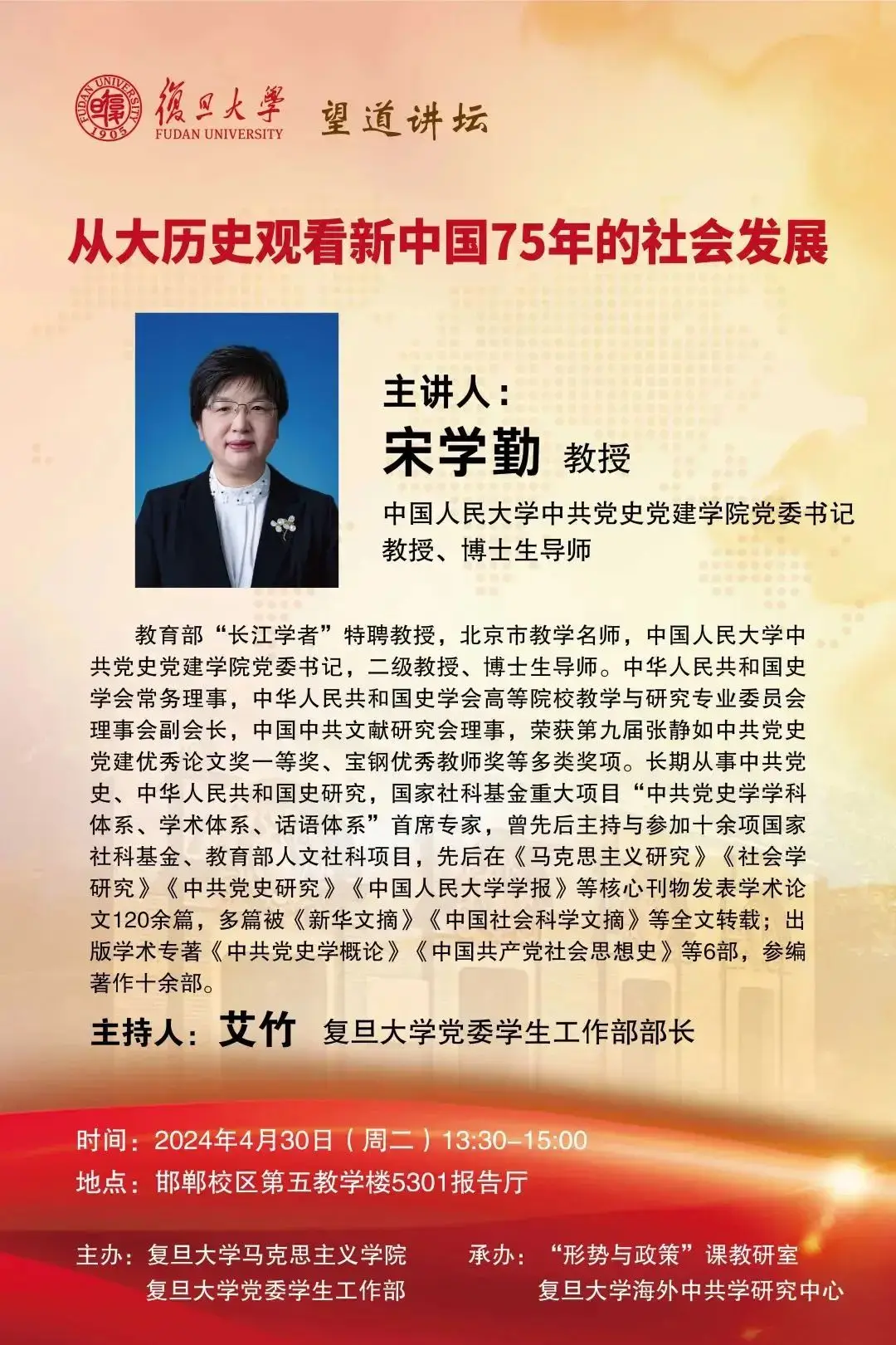 4月30日,讲座热度未曾减退。下午一点半,南区工会206处的星空沙龙聚焦于“脑机接口的伦理问题”,主讲人朱伟具备生命伦理学博士背景,会带领学生探讨科技与道德的边界。同一时刻,第五教学楼5301报告厅内,中国人民大学宋学勤教授从大历史观角度讲述新中国75年社会发展,适宜关注国史和党史的同学。