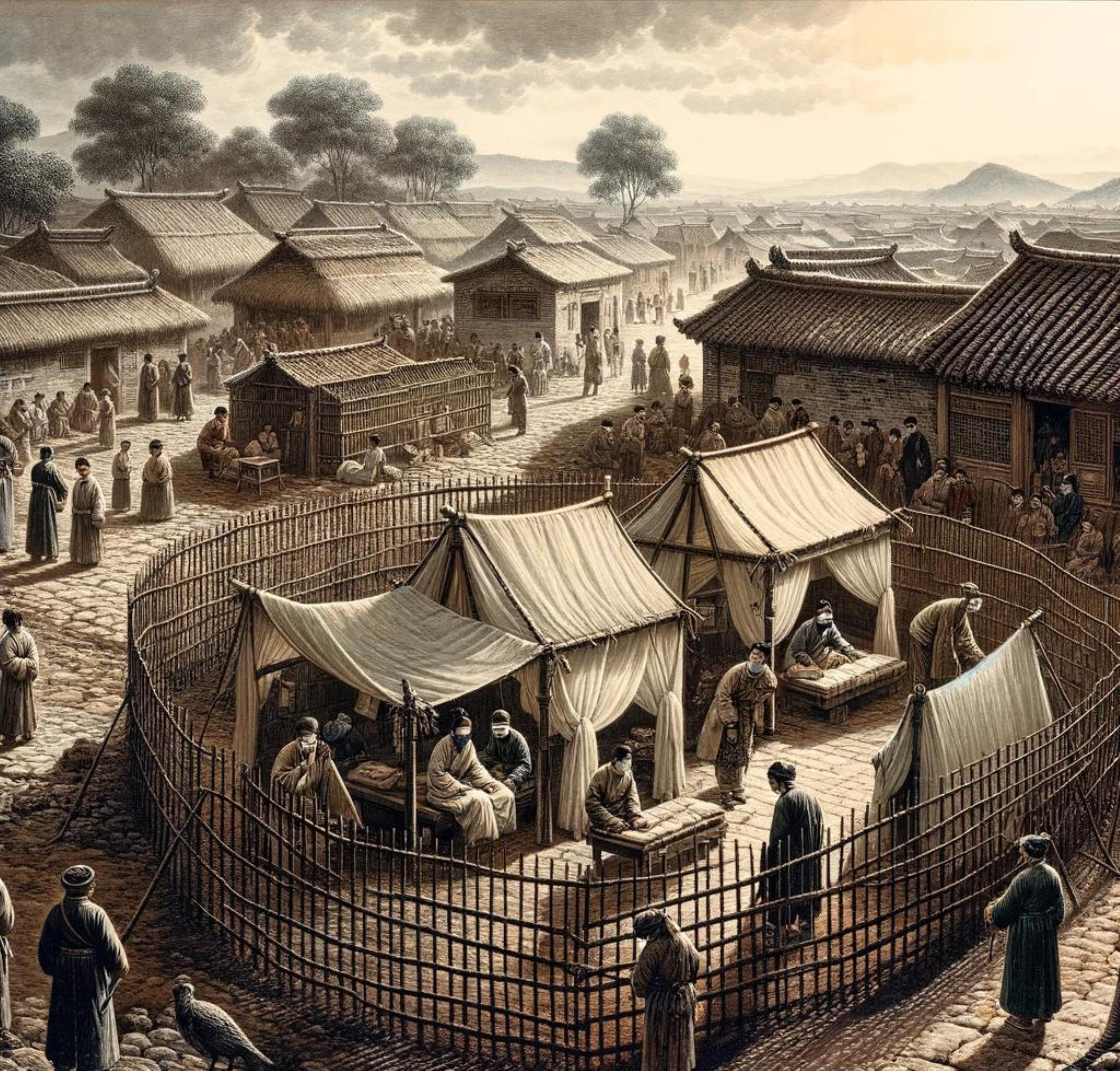光是进行封锁并不足够,要是病人与健康人混杂在一起同样会出现问题 ;明清两个朝代的时候,官府会于城外或者偏僻的地方建设“瘟疫院”,它也被称作隔离营,将确诊的患者统一加以收治 ;崇祯十五年之际,北京城爆发了瘟疫,朝廷在崇文门外设置了五处隔离营,患者被抬进去之后,家人是不可以前去探望的 ;这种隔离营的条件相当差,然而其目的非常明确:切断家庭内部的传播 ;2020年武汉建造方舱医院时,好多人对这个创意感到惊叹,实际上翻阅地方县志的话,老祖宗在几百年前就做过这样的事情了,只是当年并没有板房以及呼吸机。