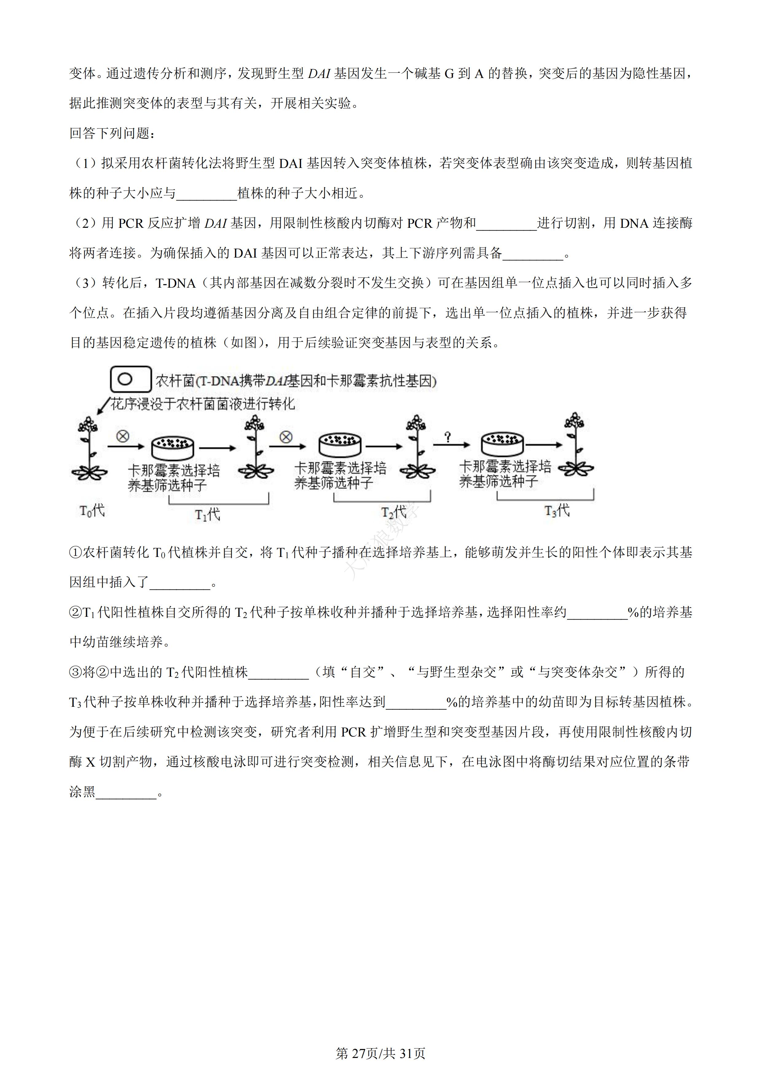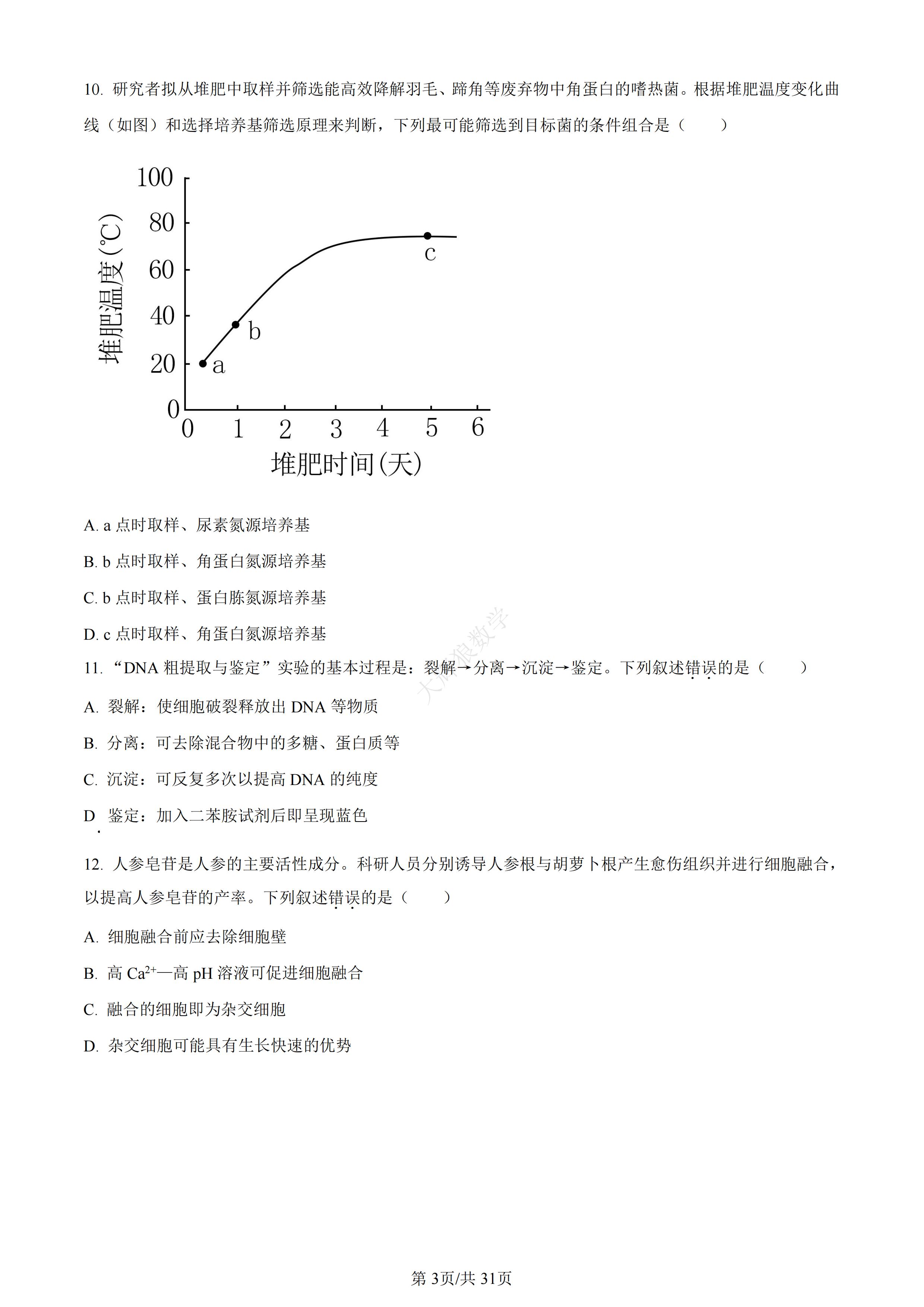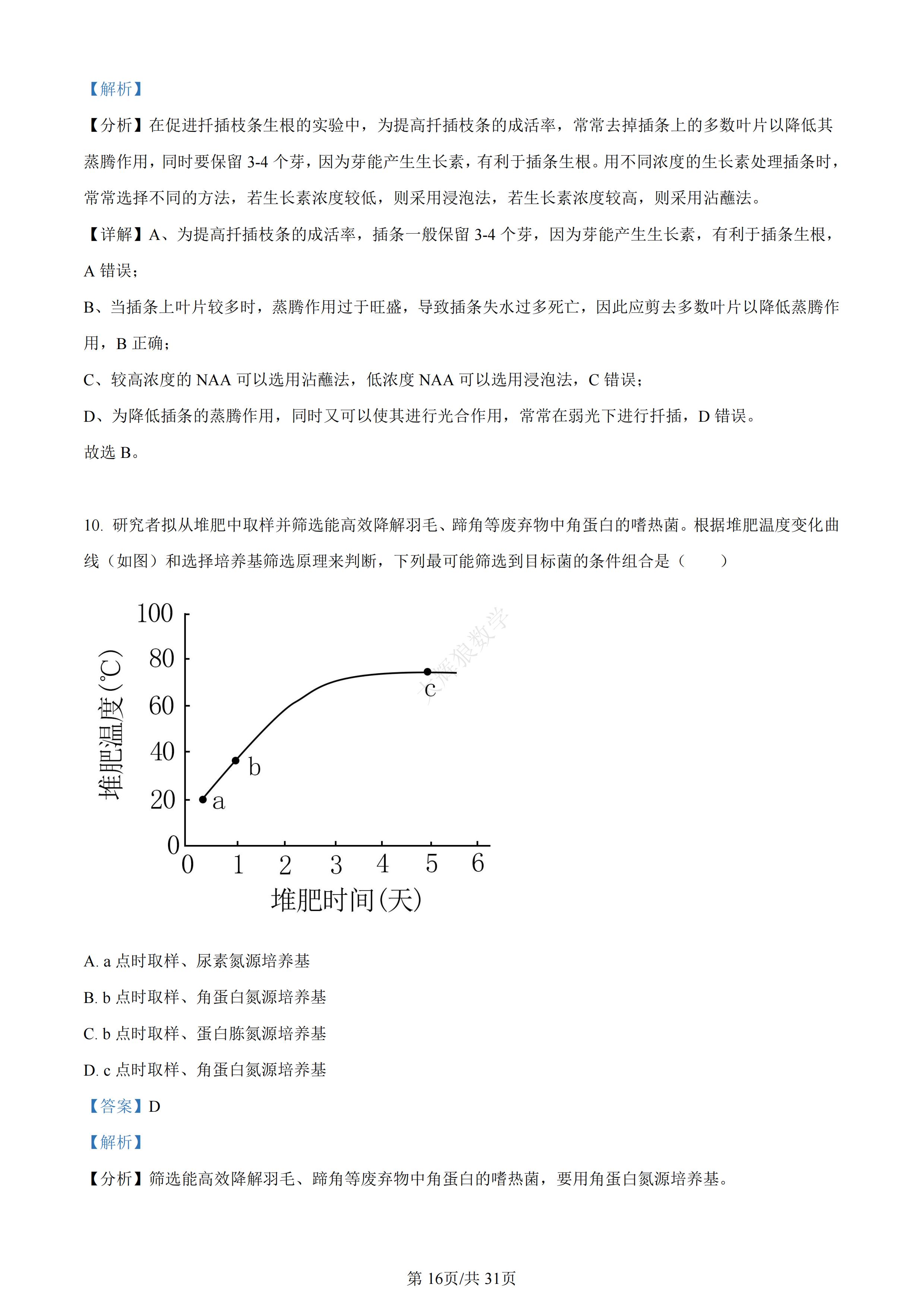 试卷显著强化了对于实验操作的考查,第9题的扦插繁殖直接源自课本实验,第11题的DNA粗提取更是对基本实验技能的校验,回想2023年广东各地模拟考,这类题目得分率普遍偏低,表明学生平时动手操作机会较少,仅仅在脑子里“做实验”是不足够的。