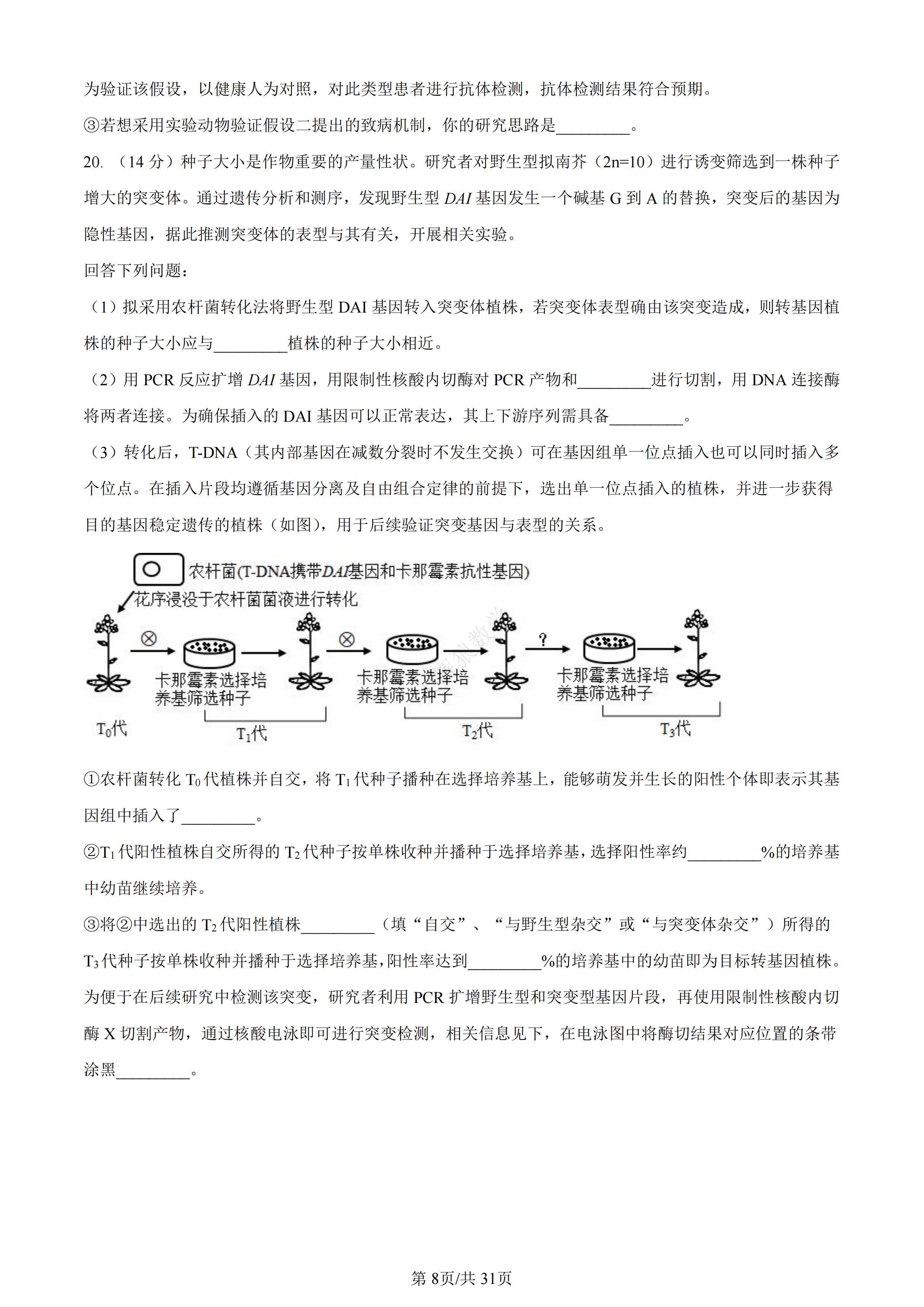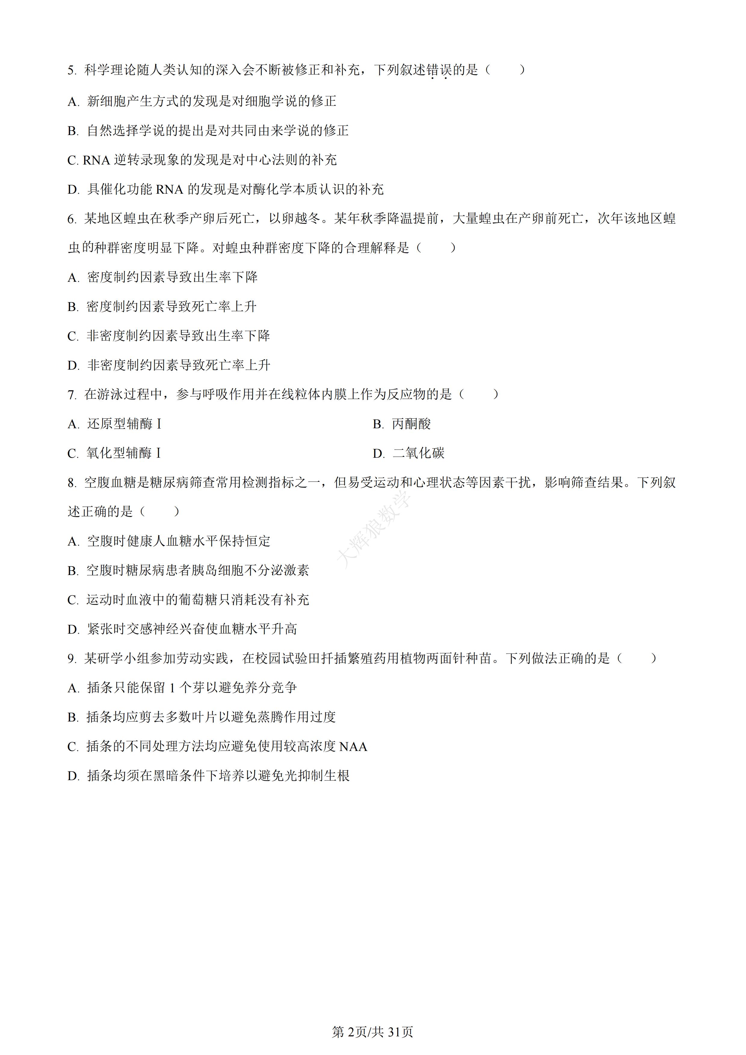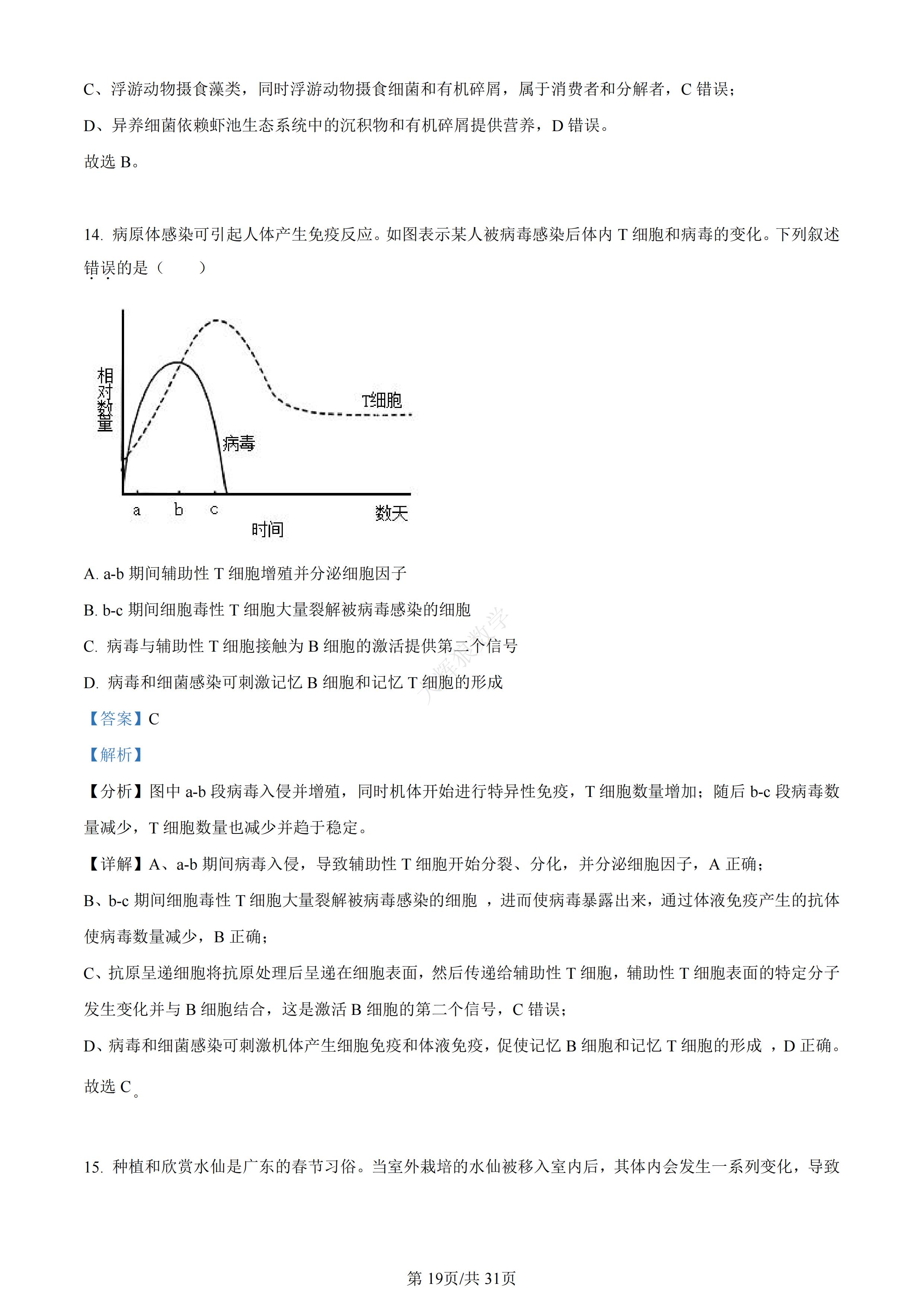 从第6题所涉及的蝗虫密度,到第8题的糖尿病筛查,之后是第13题的对虾养殖,生态保护与人类健康这两条主线极为清晰。第14题关于病毒感染,结合了当时处于后疫情时代的社会背景,考查免疫方面的知识。这对2024届考生起到提醒作用,一定要大量关注社会热点背后的生物学原理。