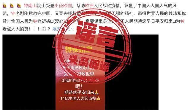 1. 3月初的时候,钟南山院士明明仅仅是跟欧洲呼吸学会开了一场视频会议,那次会议上介绍了中国的防控经验,2. 其内容传到网上后就变成了“亲自去欧洲指导抗疫”这般的情况,此条谣言能够传得很开,3. 是由于大家信任钟老,同时又觉得国外疫情状况很严重,认为中国理当伸出援手,4. 实际的情况是专家早就借助远程这种方式在分享经验,根本就不需要本人冒着风险出国,5. 下次要是看到名人“出远门”的消息,要先去查查官方渠道有没有发布相关行程。