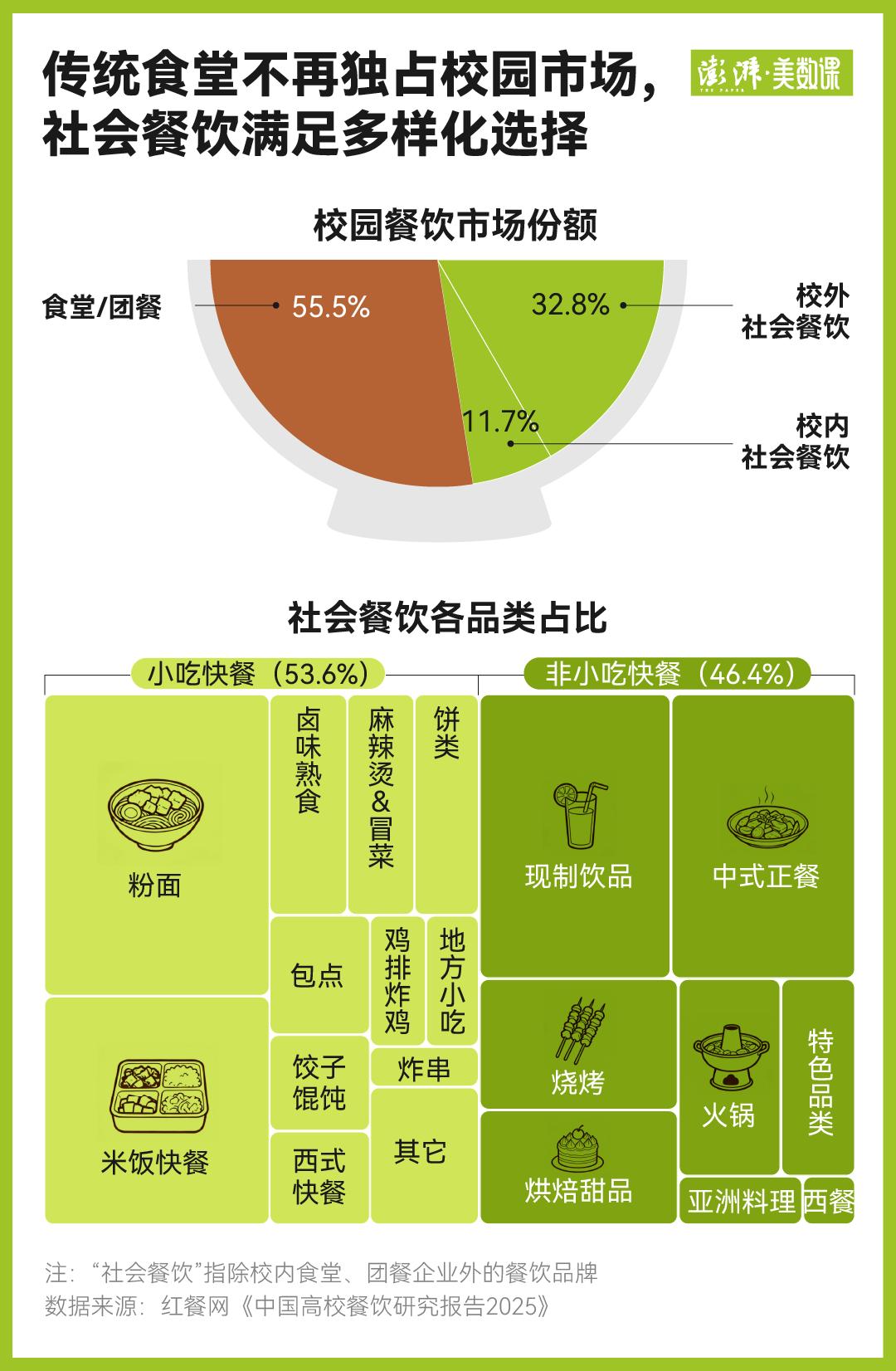 大量社会餐饮纷纷涌入校园,如此便带来了他们所形容的那种“如同鲶鱼游动所引发的效应”。红餐网给出的数据表明,于二零二四年的全国高校餐饮市场范围之内,校园外部以及内部各类社会餐饮已然占据了近乎一半的份额,而且,在高校较为集中并伴有大量商业活动的区域,社会餐饮所开设的门店总数超过了六十二万家。校内用于经商租赁的店铺租金跟着不断上涨,在这种情形下,高校食堂要是不积极主动去迎合市场那不断变化的需求,只是一味坚持传统的经营模式,最终肯定只能面临被淘汰的结局。