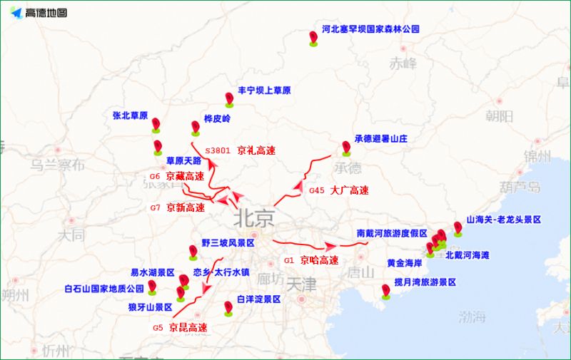 周末的时候,想要去郊区那里找一个凉快些的地方吗?十三陵、雁栖湖、古北水镇这种临水的景点将会成为热门的选择,周边省市的张北、丰宁、白洋淀还有秦皇岛这样外地地域地方同样也会引来不少众多市民驾驶自己的汽车前往,连接这些景区的各个各条高速公路通行的压力跟着随之就上升了。
