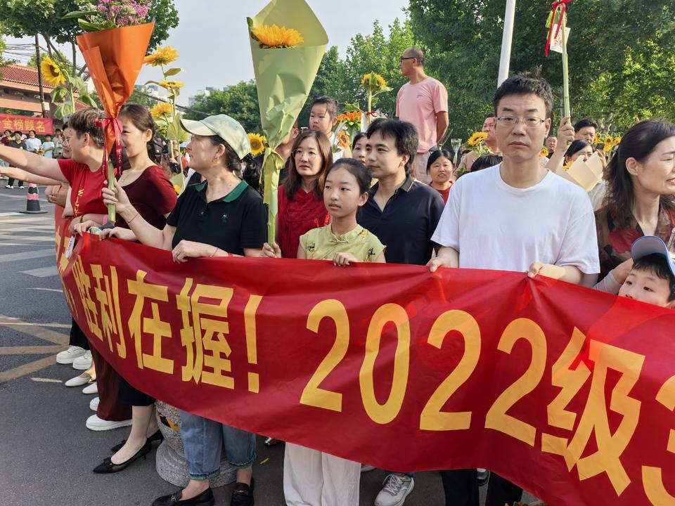写满祝福语的横幅与手牌,在考点之外的各处都能瞧见,老师们身着红色 T 恤给学生送考前往。每当有考生迈入考场之际,加油声便会此起起彼伏地传入耳中。那来自各个不同方向的祝福集结在一起,形成一股温暖的力量,伴随考生去完成这场至关重要的考试。