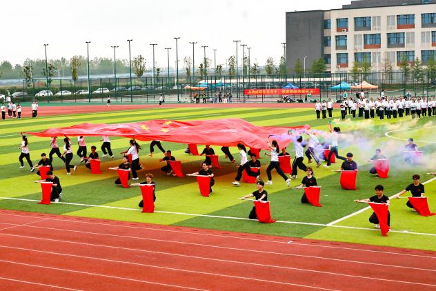 早上八点,激昂的运动员进行曲按时奏响,国旗方队六名护旗手身着白色制服高举鲜艳五星红旗,率先踏上红色跑道,他们每一步都走得笔直且有力,正步经过主席台时整齐脚步声令全场师生不禁肃然起敬,紧随其后的是鲜花方队,女生们手捧粉色与黄色花束,笑容比花朵更加灿烂。