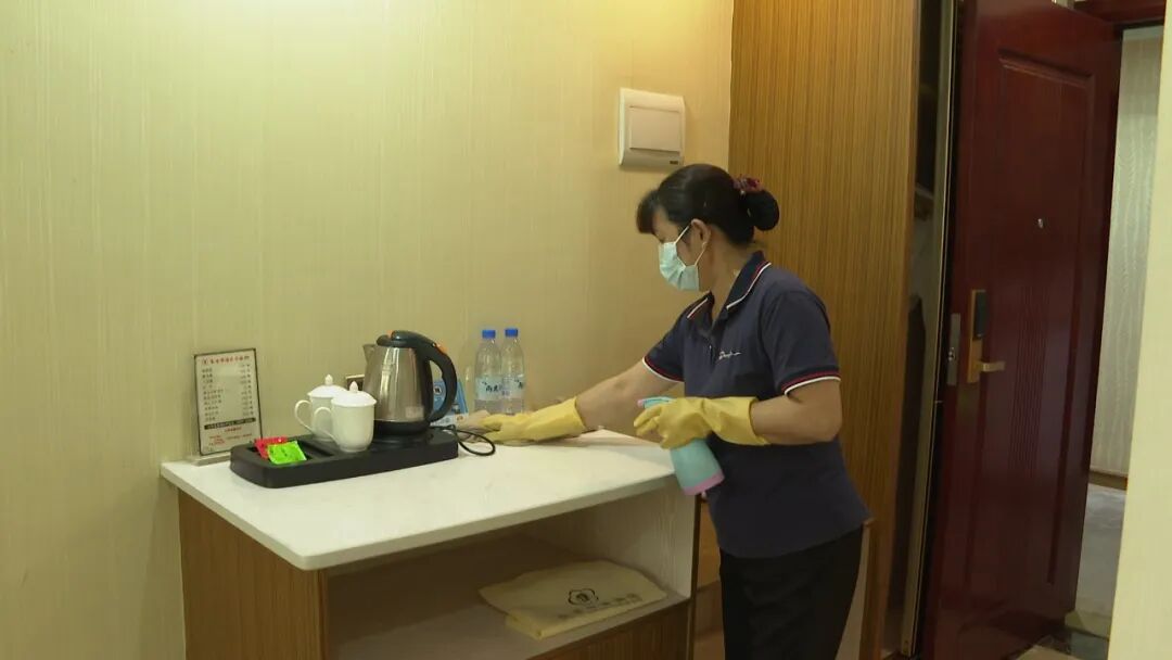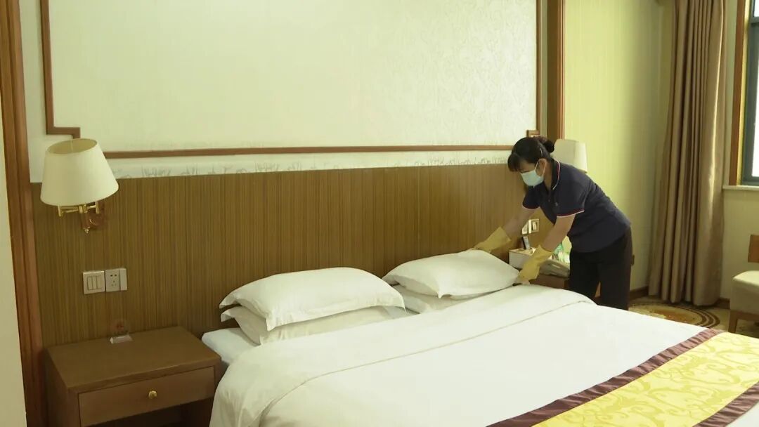 可接受的住宿环境的基本要求是干净整洁,记者探访之际,看到工作人员正用心打扫客房,四季华景酒店更是早在一周之前就着手准备,当前所有房间的清洁消毒以及消杀工作均已完成。
