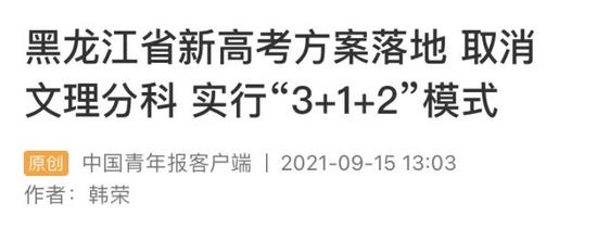 今年 9 月,黑龙江发布新高考方案,明确从 2021 年秋季入学的高一新生起取消传统文理分科,其方案显示学生要在物理和历史里首选 1 门,再从化学、生物、政治、地理中选 2 门,共组成 12 种组合。今年 9 月,甘肃也发布新高考方案,同样采取“3+1+2”模式且明确从 2021 年秋季入学的高一新生开始取消传统文理分科,2024 年起将实行统一高考与学业水平考试相结合的录取方式。今年 9 月,江西发布新高考方案,明确从 2021 年秋季入学的高一新生开始取消传统文理分科。
