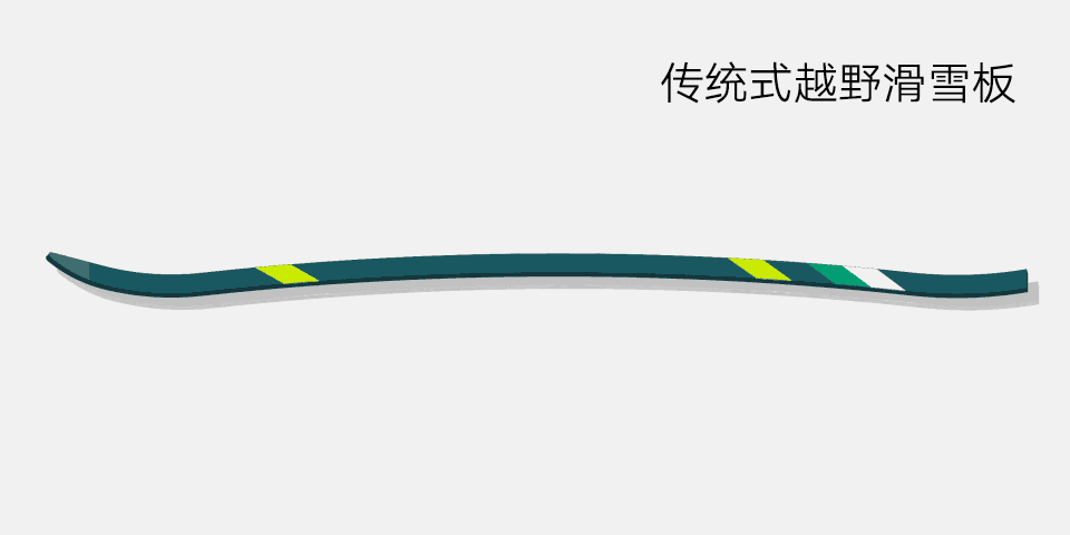 越野滑雪板存有个拱起的弧度处于中间,下面被打上防滑蜡。此设计类似一张弓,蹬冰之际板子压平从而贴地来提供推力,抬脚之时拱起进而减少摩擦,这属于长距离滑行的核心技术。