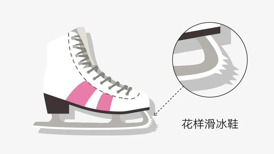 用有锯齿的冰刀前端作为花样滑冰运动员起跳以及旋转时用于“抓”冰的支点,冰舞选手的冰刀更短锯齿更细小,原因是两人做动作时需贴得很近,太长的刀容易相互绊到。