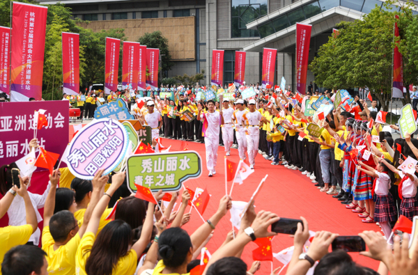 良渚古城遗址公园进行火种采集,使得中华五千年文明之光和现代体育精神首次实现交汇,有一支火炬,其设计灵感源于良渚玉琮,用“丹桂金”来点缀“虹韵紫”,在浙江11个设区市开展接力,从杭州涌金公园始发,经过湖州、嘉兴等诸多地方,此火炬每抵达一处,便会成为当地最为耀眼的景致,在9月17日金华站传递之时,市民们迎着骄阳布满街道,“杭州加油”的口号声连绵不断,火炬所至之地,人们以独特的方式予以欢迎,在湖州甚至出现了融合山水与亚运元素的舞蹈表演。