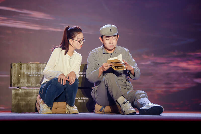 小品《穿越时空的回信》有着十足的创意,是以一封封穿越时空的信件,将不同时代的青年连接起来,台上的演员会时而扮演抗战时期的学子,时而又变为现代大学生,在时空转换当中展现着不变的家国情怀。