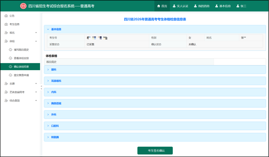 体检结束之后的结果确认这个环节相当关键,得在规定的时间之内登录系统去查看体检结论,并且点击签字进行确认。2024年的时候,绵阳市存在超过200名考生,因为没有及时确认,从而致使体检信息变得无效,最后是紧急联系招办才成功解决问题,确认之前要仔细核对身高、体重、视力等这些数据有没有错误。
