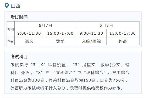知道分数构成情况之后,考试时间同样不可疏忽大意。全国统一高考里的语文、数学、外语考试时间大体是固定的,按照黑龙江、福建等地的相关安排,一般都是在6月7日以及6月8日举行。这里面语文考试时间是最长的,长达150分钟,数学以及外语(笔试)的时间是120分钟。