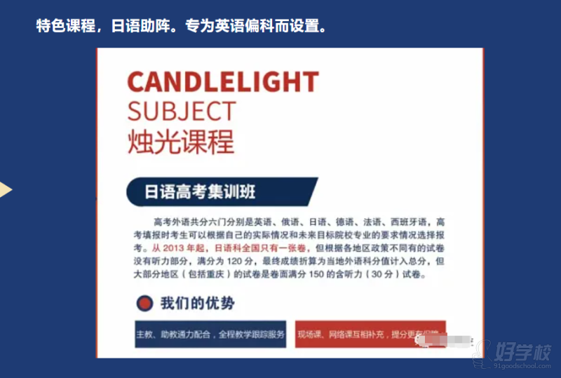 凡是教师,皆名校毕业,专业能力颇为突出,年年奋战于高三最前沿。全职教师与兼职教师搭配得当,兼具稳定性与灵活性。学校配备专任日语教师,针对英语偏科极为严重的学生,借助日语能在短时间内零基础实现高效提分。