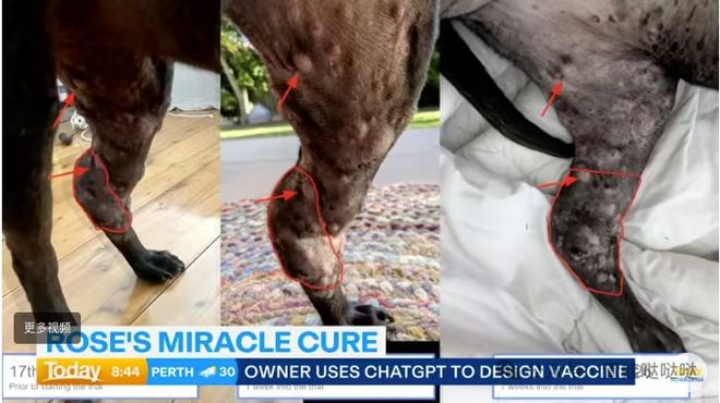 身为悉尼的AI工程师的Paul Conyngham,当听闻兽医所讲爱犬Rosie仅剩下几个月生命之际,他并未选择接受命运安排。身为毫无医学背景的技术极客,他硬是凭借GPT以及AlphaFold,为狗狗专门打造出全球首款个性化mRNA癌症疫苗,使得网球大小的肿瘤直接缩小了75%。这场跨越物种的救助,不但感动了马斯克以及OpenAI总裁,更让我们见识到了AI跨界医疗的无尽可能。
