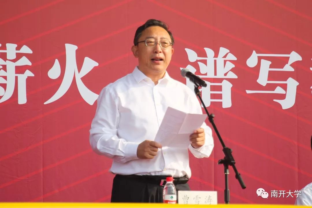 曹雪涛向全体师生寄语,说道,希望大家能够借着此次运动会这个契机,把体育锻炼当作一种良好习惯,把身体健康当作一种人生追求,继承并发扬拼搏竞争、循规守则、耐受输赢的体育精神,凭借更优异的成绩迎接南开新百年,去谱写新的篇章 ,这不但仅是校长的期望,更是南开新百年奋斗的行动指南。