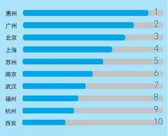 2015年,在违章城市的排名榜单之上,惠州处于榜首位置,紧挨着它的是东莞以及佛山。令人感到意外的是,深圳居然没有进入前十,车主们所展现出的文明素质的确是值得给予称赞。惠州的交管部门表明已经留意到了这个数据,在今年将会加大交通整治的力度。