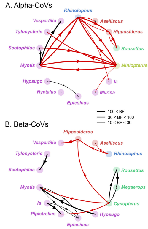 相对“保守”的是β型冠状病毒,它们将宿主交换主要限定于亲缘关系比较相近的蝙蝠种类的范围之内,属于这一类的是SARS相关的病毒,其主要在像马蹄蝠等特定的蝙蝠群体里面开展传播,正是这种传播特性使得它们的扩散路径更易于被追踪。