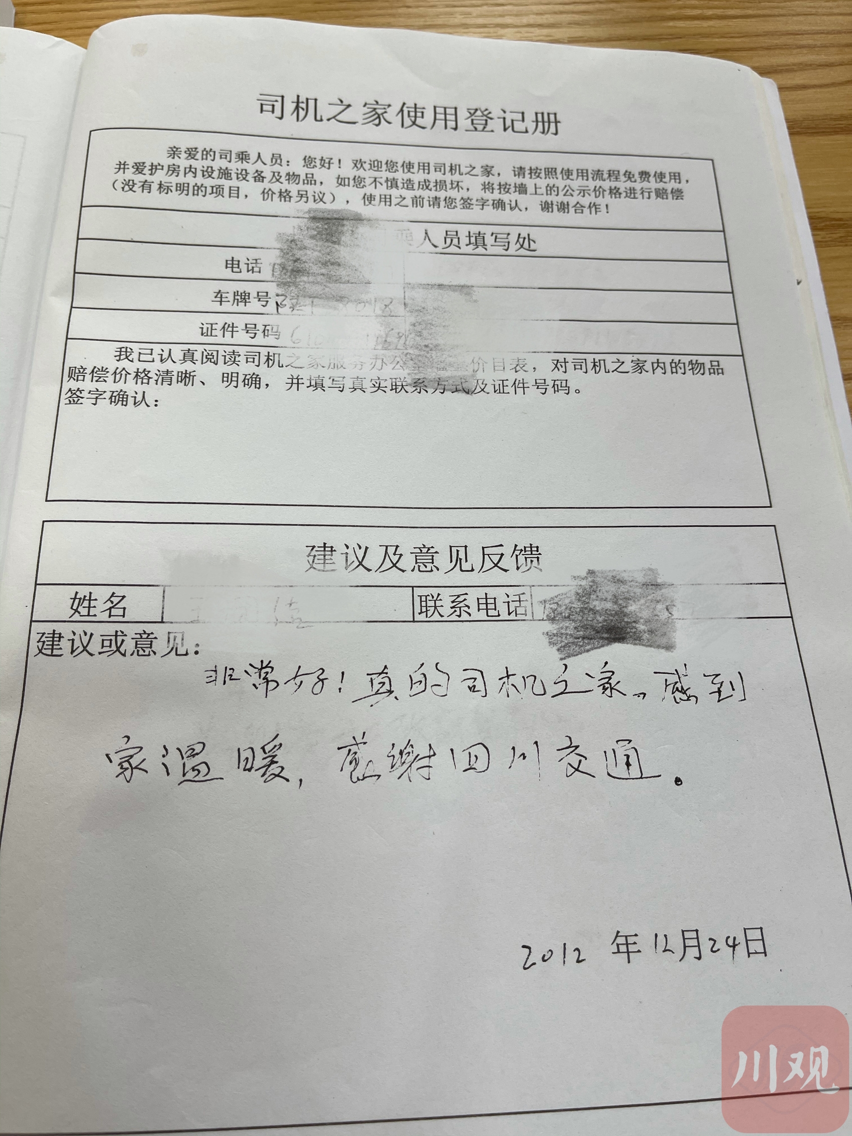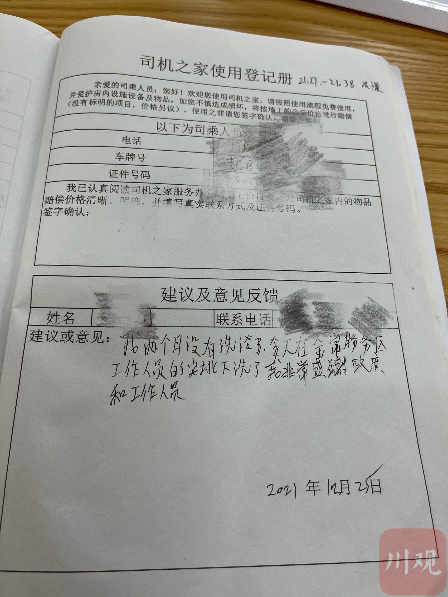 2021年12月22日,在蜀道集团成德南高速公路金堂服务区,全省首个,“货车司机之家”升级版的“暖心之家”,正式投入使用。和普通服务区不一样,这里全天24小时运营,专门去解决货车司机的核心痛点,也就是喝上一口热水,吃上一口热饭,洗上一个热水澡,睡上一个安稳觉。一个月之后进行回访,记者发现登记册上写满了,来自川、鲁、冀、黑、赣、辽、豫等地司机的留言,“非常满意”,“真正的司机之家”成为高频词。