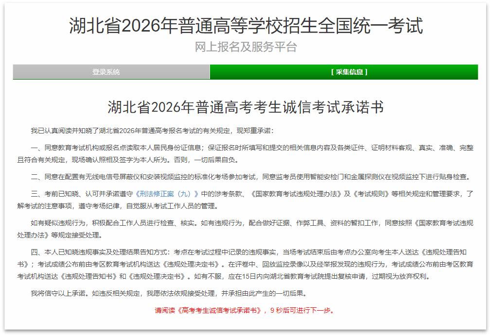 考生登录高考报名网站,之后点击“开始报名”,还要输入高考报名号、登录密码以及验证码,如此便能进入系统。首次登录完,系统会强制要求签署《考生诚信考试承诺书》,跟着会提示修改密码。这一步是为保障账户安全,建议设置自己容易记住然而不易被猜到的密码。