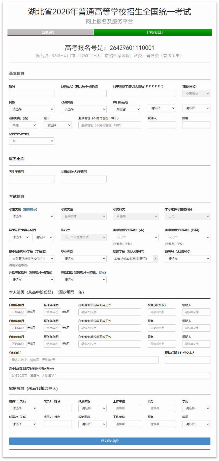 从高中阶段起开始填写本人简历栏,中职生则是从职高、中专、技校阶段着手。家庭主要成员栏需录入父母或者监护人的基本情况。要是系统提示“该身份证号已经报名”,这表明一个身份证号仅能注册一个报名号,此时要检查是不是填错了,或者向区县教育考试机构寻求咨询。应届生倘若使用了往届生类别的报名卡,那就必须马上停止报名,去找老师更换正确的卡。