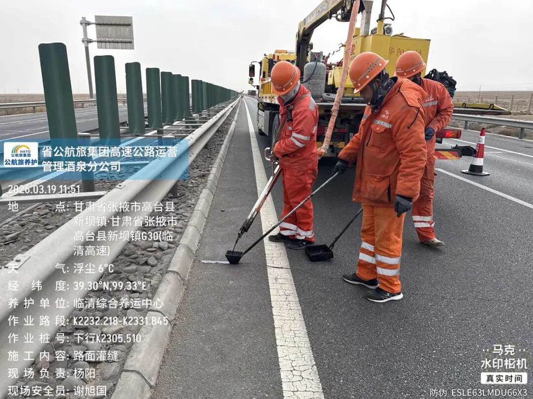 春分过后,气温稳定回升,路面冻融循环进入平稳阶段,此为处理道路病害的绝佳时机。酒泉分公司秉持预防为主、防治结合原则,组织养护人员对辖区高速展开拉网式排查,从路面裂缝至交安设施,无一死角。